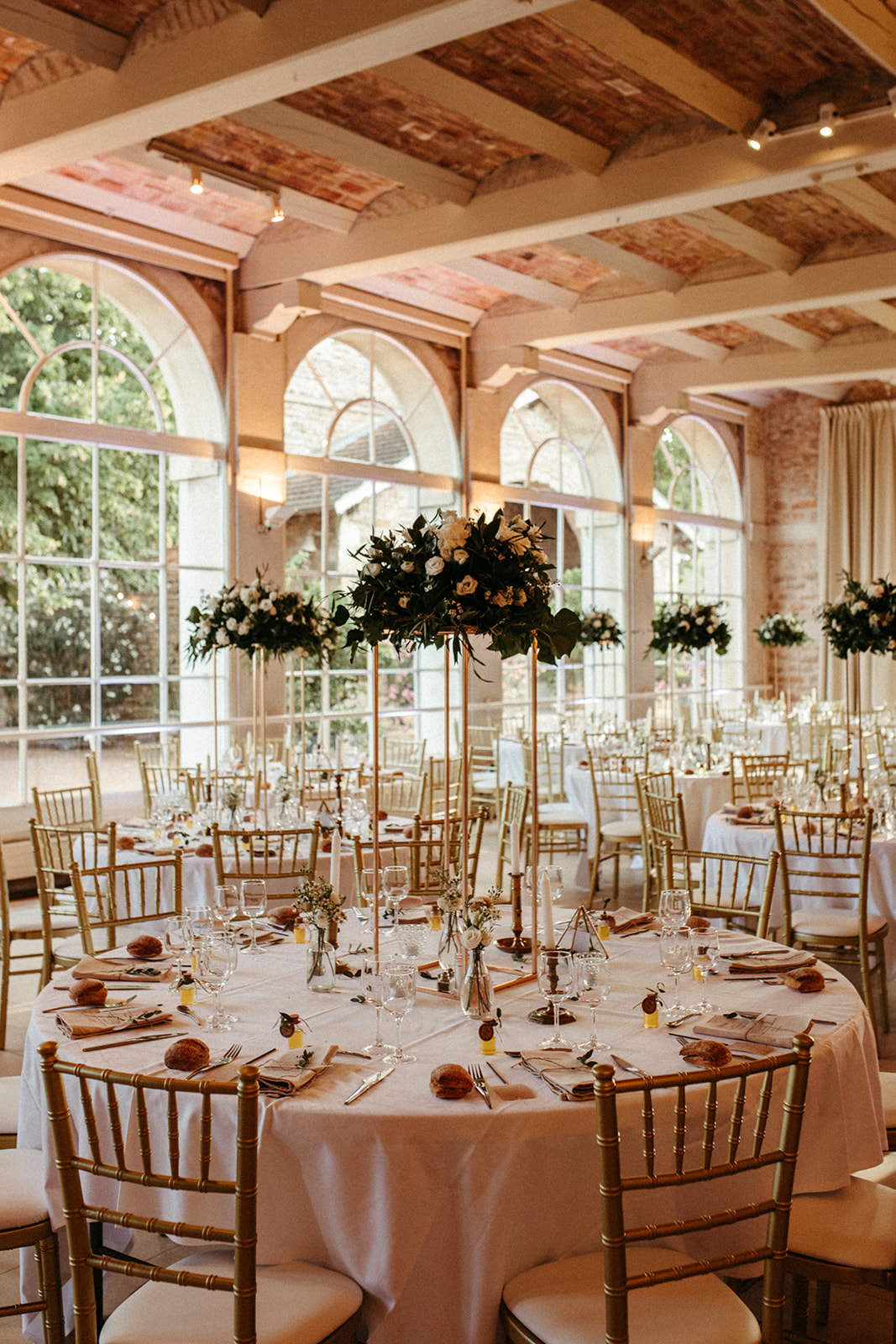 Scénographie: Location de décoration de mariage. Idéale pour donner du volume à votre table, sans gêner la discussion et la vision entre vos convives tout au long du repas; avec un esprit chic et graphique.